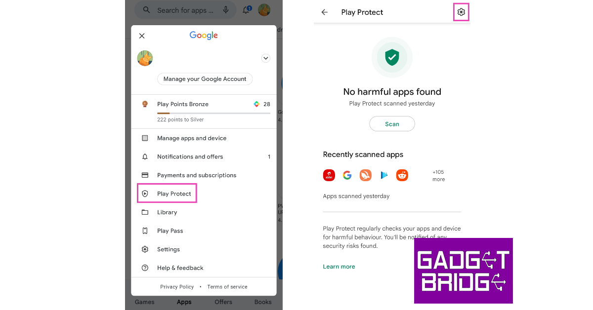 3. Adım:'Play Protect'i seçin ve ekranın sağ üst köşesindeki Ayarlar simgesine dokunun.