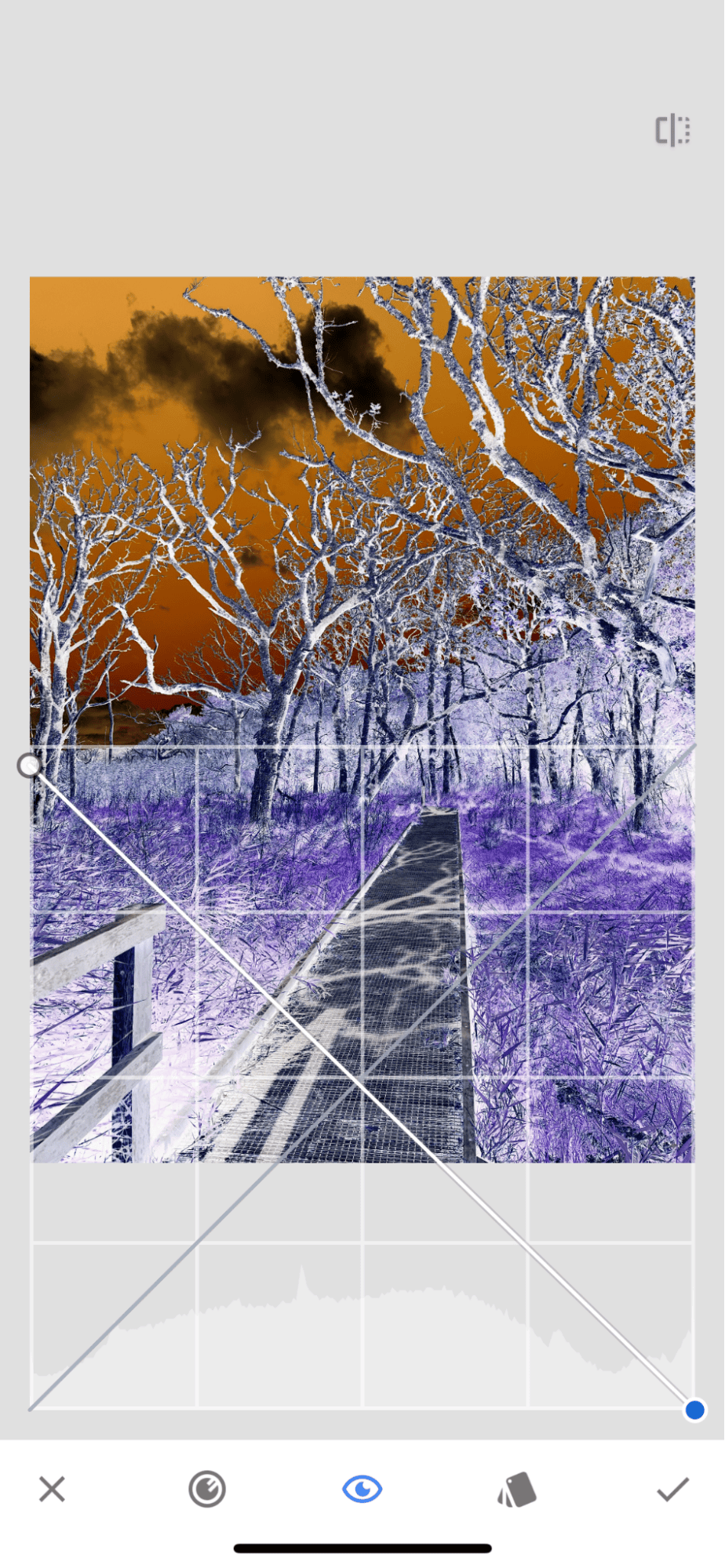 Snapseed bizim en büyük tavsiyemizdir, çünkü diğer birçok uygulama gibi, bu tamamen ücretsiz ve tamamen kullanıcı dostudur. Yeni başlayanlar dostu ayarlamalardan uzman düzeyinde düzenlemeye kadar birçok özellik ve araca sahiptir. Görüntünüzü Snapseed'de ters çevirmek ve kaydetmek için Curves aracını kullanın. Ters bir görüntü görünümü elde etmek için eğrileri zıt uçlara sürükleyin.