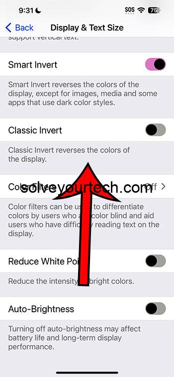 Son olarak, 'Renkleri tersine çevirme' seçeneği göreceksiniz. Burada, 'Akıllı Inverver' ve 'Klasik Taşıma' arasında seçim yapabilirsiniz.