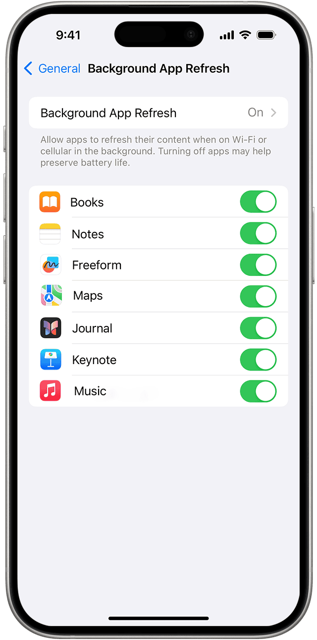 - Arka Plan Uygulaması Yenileme: Ayarlara, ardından genel, ardından arka plan uygulaması yenileme yapın. Ayrıca, belirli uygulamalar için arka plan uygulaması yenilemesini aç veya kapatabilirsiniz.