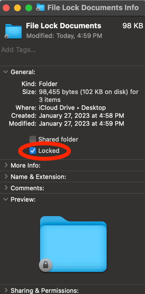 Mac'teki bir dosya klasörünü veya belgesinin kilitlenmesi, dosyayı kendiniz de dahil olmak üzere herhangi bir kullanıcı tarafından düzenlenmesini veya değiştirilmesinden korur, ancak dosyaları şifre olmadan görüntülemeye izin verir.