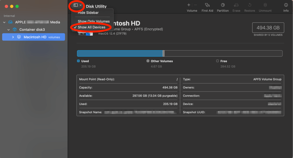 Tüm cihazları göster seçinmenüdeSolakiDisk yardımcı programıbaşlık.