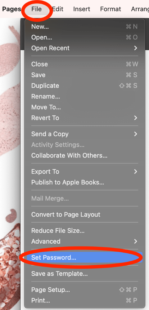 Dosyayı tıklayın,Daha sonraŞifreyi Set'i tıklayın.
