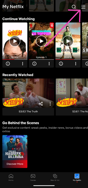 2. Adım:DenemekNetflix'imekranın sağ alt köşesinde.
