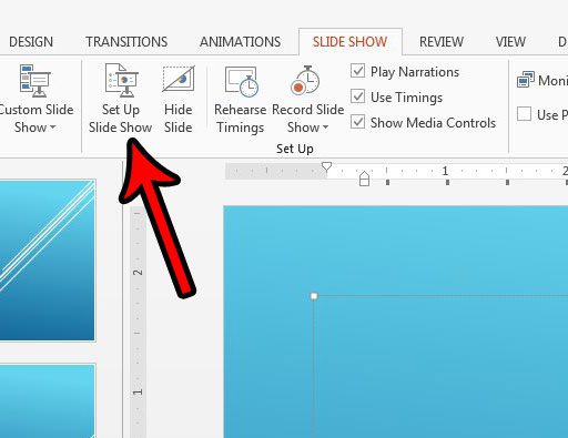3. Adım: tıklayınSlayt gösterisi ayarlayıniçindeki düğmeKurmakŞeridin bölümü.
