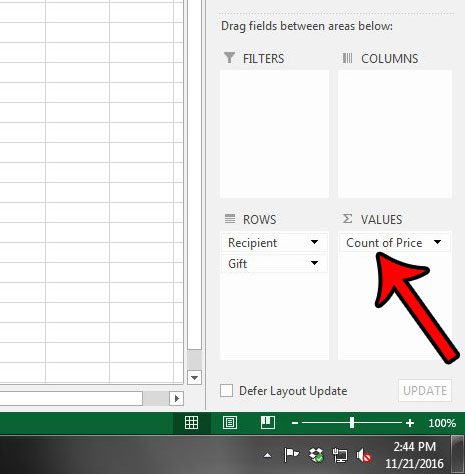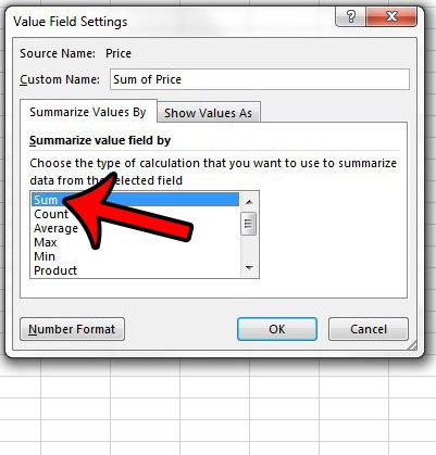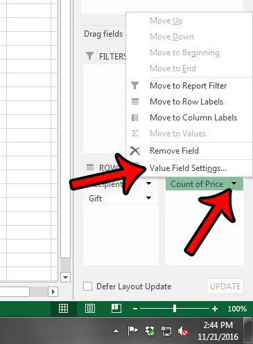 Adım 11: Sağdaki oku tıklayınFiyat sayısısonra tıklayınDeğer alanı ayarlarıseçenek.