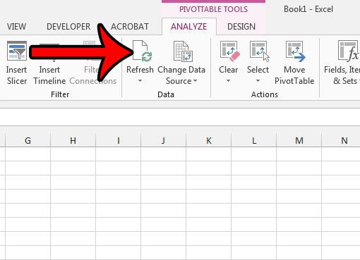 Daha fazla hediye eklerken pivot tablosunu güncelleyebilirsiniz.Yenilemeküzerindeki düğmeAnaliz etmekSekme AltındaPivottable Araçlar. Pivot tablosunun içinde bir yere tıklamanız gerekeceğini unutmayın.Pivottable Araçlarsekme görünür.