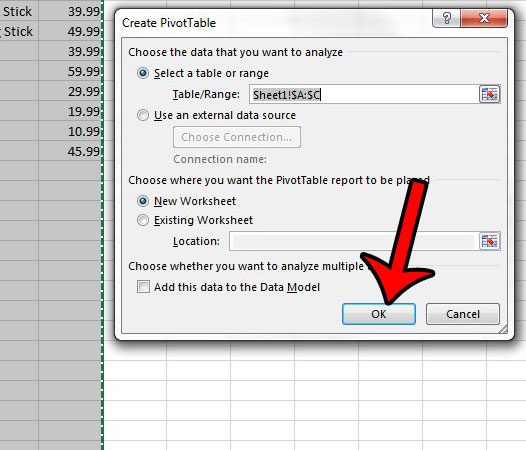 Adım 8: tıklayınTAMAMaltındaki düğmePivottable Oluşturpencere.