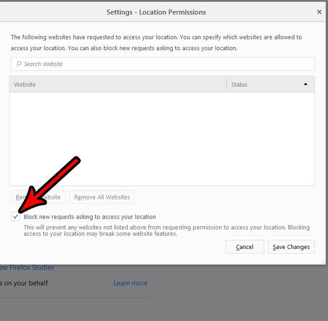 Adım 6: Kutuyu solundaki kutuyu kontrol edinKonumunuza erişmek isteyen yeni istekleri engelleyinsonra tıklayınDeğişiklikleri Kaydetdüğme.