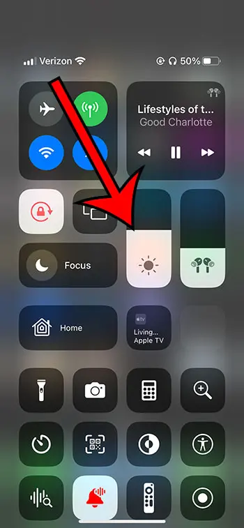 İPhone 13 ekranınızı daha parlak hale getirmek istiyorsanız, ekranın sağ üst köşesinden aşağı kaydırmanız ve sonra parlaklık kaydırıcısını sürüklemeniz gerekir.