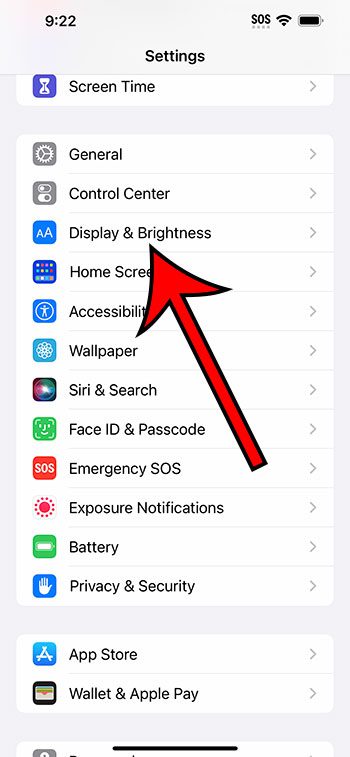 2. Adım: Aşağı kaydırın veEkran ve Parlaklıkseçenek.