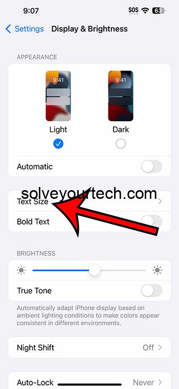 İPhone 14 metninizi daha büyük hale getirebilirsiniz.Ayarlar> Ekran ve Parlaklık> Metin Boyutu>Ve sonra kaydırıcıyı sağa sürükleyin.