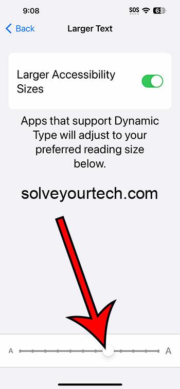Adım 4: Ekranın altındaki kaydırıcıyı metin boyutunu artırmak için sağa sürükleyin.