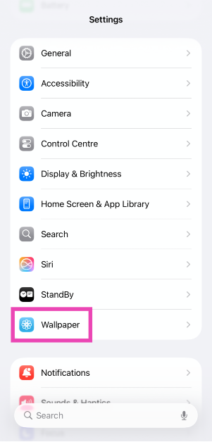 1. Adım:Gidip gelmekAyarlarve seçDuvar kağıdı. Ayrıca yapabilirsinizuzun presÖzelleştirmek için kilit ekranı.