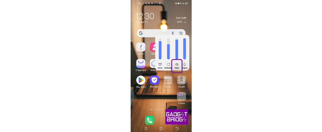 2. Adım:Ardından, ses kaydırıcısının üst kısmında bulunan üç noktaya dokunun. Bu, dört farklı ses seviyesi kaydırıcısı içeren birim menüsünü açacaktır. Bu kaydırıcılar zil, medya, alarm ve sistem sesleri içindir.