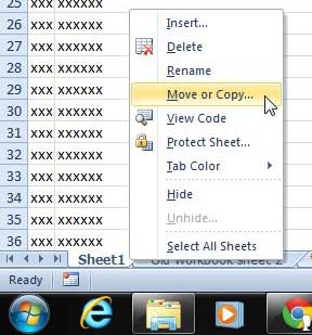 - Hareket etmek için sayfa sekmesini sağ tıklayın, ardından tıklayınTaşın veya Kopyala.