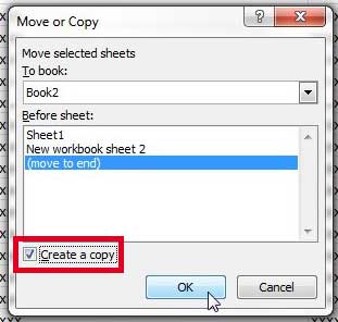 Adım 4: Orijinal çalışma sayfasını taşımak istediğiniz ikinci çalışma kitabındaki konumu seçin, kutuyu soldaki kutuyu işaretleyinBir kopya oluştur(Orijinal çalışma sayfasını ilk çalışma kitabında bırakmak istiyorsanız),TAMAMdüğme.