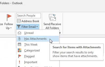 Outlook 2013 Gelen Kutunuzu yalnızca ekli e -postaları görüntülemek için filtreleyin