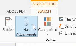 4. Adım: tıklayınEkleri varOutlook'un yalnızca ek içeren e -postalar için klasörünüzü filtrelemesine neden olan seçenek.