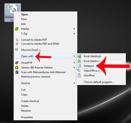 2. Adım: Dosyayı sağ tıklayın, tıklayınAçılmaksonra tıklayınNot defteri.