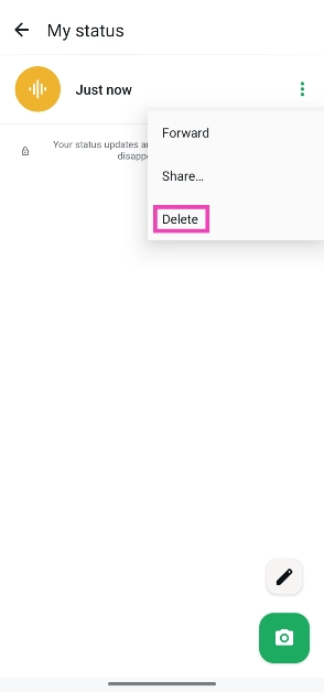 WhatsApp Durum Güncellemeniz olarak bir ses notunu silin
