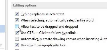 Microsoft Word'ün Sürükle ve Bırak özelliği nasıl devre dışı bırakılır