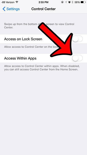 Ancak kontrol merkezini kazara açtığınızı veya açık bir uygulamanız varken asla kullanmaya çalışmadığınızı görebilirsiniz. Bu durumda, kontrol merkezinin bir uygulamadan açılmasını sağlayan seçeneği kapatmak isteyebilirsiniz. Aşağıdaki kılavuzumuz, devre dışı bırakabilmeniz için bu ayarı nerede bulacağınızı gösterecektir.