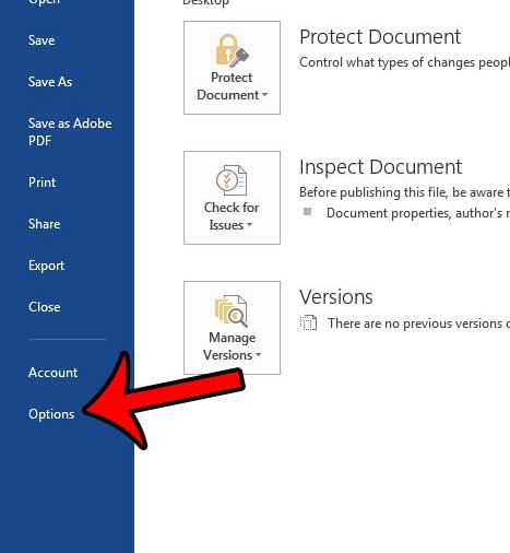 3. Adım: tıklayınSeçeneklerPencerenin sol tarafındaki sütunun altındaki düğme. Bu yeni birKelime Seçenekleripencere.