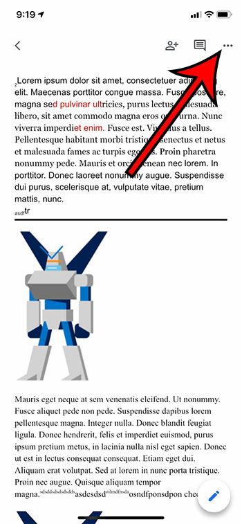 Bu bölümdeki adımlar iOS 14.6'da bir iPhone 11'de gerçekleştirildi. Bu adımlar ayrıca iOS'un aynı sürümünü ve iOS'un diğer birçok sürümünü kullanarak diğer iPhone modellerinde de çalışacaktır. Bu makalenin yazıldığı sırada mevcut olan Google Docs uygulamasının en güncel sürümünü kullanıyorum.