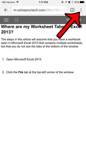 Adım 2: Yazdırmak istediğiniz sayfayı bulun, ardından pencerenin sağ üst köşesindeki menü simgesine (üç noktalı olan) dokunun.