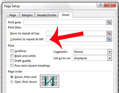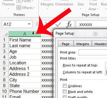 Bu öğreticideki adımlar, Excel 2013'ten yazdırdığınız her sayfanın sol tarafına yazdıran bir sütun seçmenize olanak tanır.