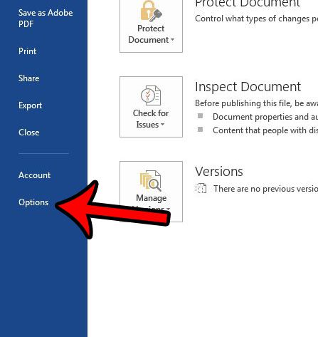 Adım 3: TıklayınSeçeneklerWord 2013 penceresinin sol sütununda.