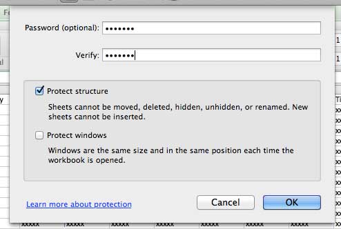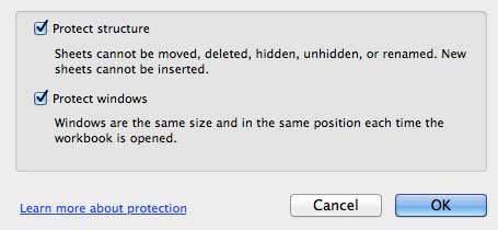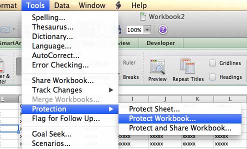 .KorumaExcel 2011'deki özellik aslında mevcut etkin çalışma sayfasının belirli öğelerini korumak veya tüm çalışma kitabının yapısını korumak arasında belirtmenizi sağlar.