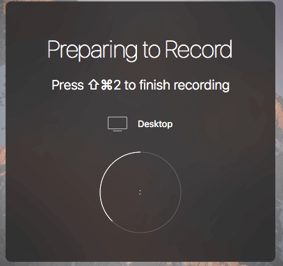 Ekran akışı, kayda başlamadan önce beşten geri sayılır. İşiniz bittiğinde, kaydı durdurmak için Shift + Komut + 2 tuşuna basın veya menü çubuğundaki Kayıt Durdur düğmesini kullanabilirsiniz.