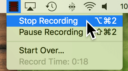 Kayıt bitirdiğinizde, oturumu bitirmek için menü çubuğundaki durdurma düğmesine tıklayın veya komut + vites + 2 tuşlarına basın.