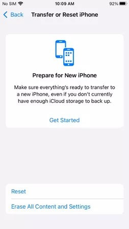 1. Adım.İOS aygıt ayarlarını başlatın ve "İPhone aktarma veya sıfırla" düğmesine basmadan önce genel simgeye tıklayın.