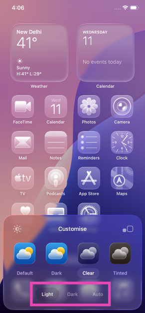 Adım 5:Seçışıkveyakaranlık tema. Ayrıca seçebilirsinizOtomobil, özel karanlık mod programınıza bağlıdır.