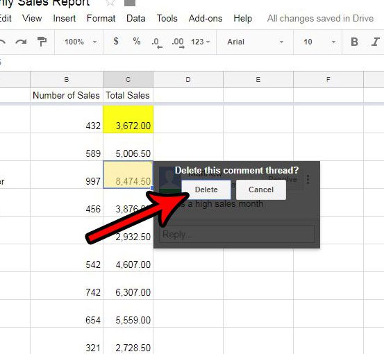 4. Adım: tıklayınSilmekBu yorum iş parçacığının silinmesini onaylamak için tekrar düğme.