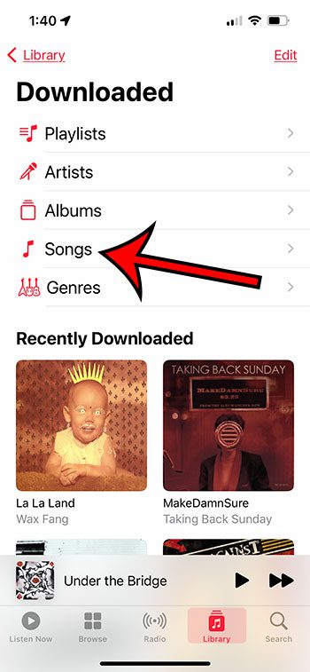 - Ekranın altında “Şarkılar” sekmesine dokunun.