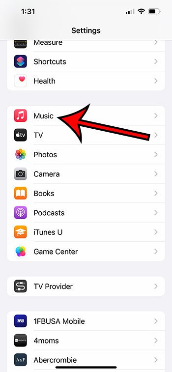 2. Adım: Aşağı kaydırın veMüzikseçenek.