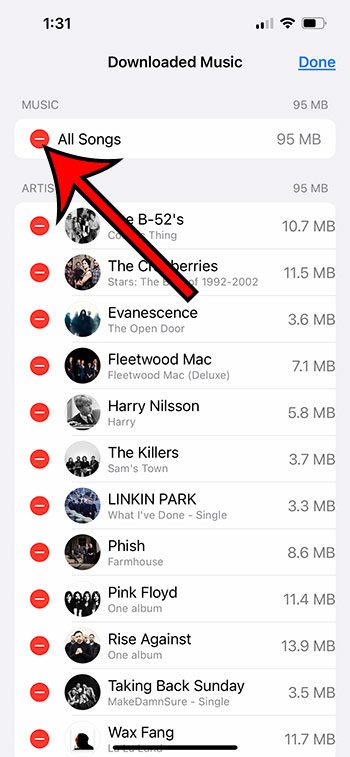 - Yanında kırmızı daireye dokununTüm Şarkılar.