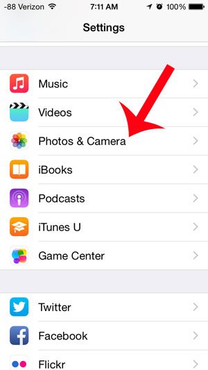 2. Adım: Aşağı kaydırın veFotoğraflar ve Kameraseçenek.