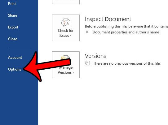 2. Adım: TıklayınSeçeneklerSoldaki sütunun altında.