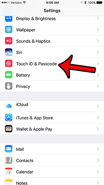 2. Adım: Aşağı kaydırın veDokunma Kimliği ve Parolaseçenek.