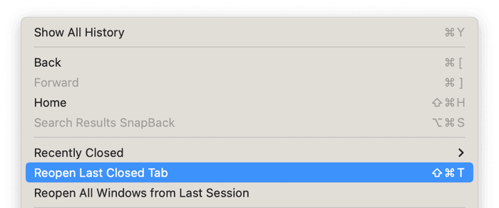 Ya sekmeyi kapattığınızdan beri Safari kullanıyorsanız ve sadece farkına vardıysanız ve şimdi tekrar açmak istiyorsunuz? Geçmiş menüsünü tıklayın ve Son Kapalı sekmesini yeniden açın. Veya Command+Shift+T'ye basın - aynı şeyi yapacak. Yeniden açmak istediğiniz sekme en son kapalı sekme değilse, geçmiş menüsünü tıklayarak ve yakın zamanda kapalı seçerek yakın zamanda kapalı sekmeler listesini görüntüleyebilirsiniz. Daha sonra yakın zamanda kapalı sekmelerin bir listesini göreceksiniz. Birini seçerseniz, yeni bir sekme olarak açılır.