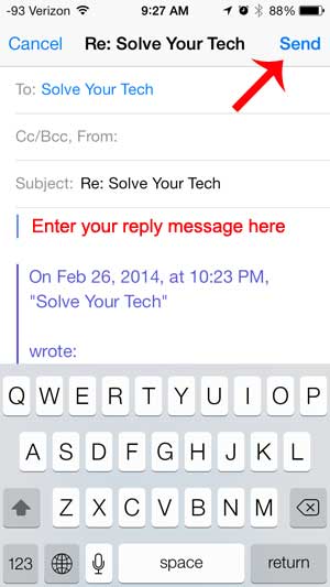 Adım 5: Cevap mesajınızı e -postanın gövdesine girin, ardındanGöndermekEkranın sağ üst kısmında simge.