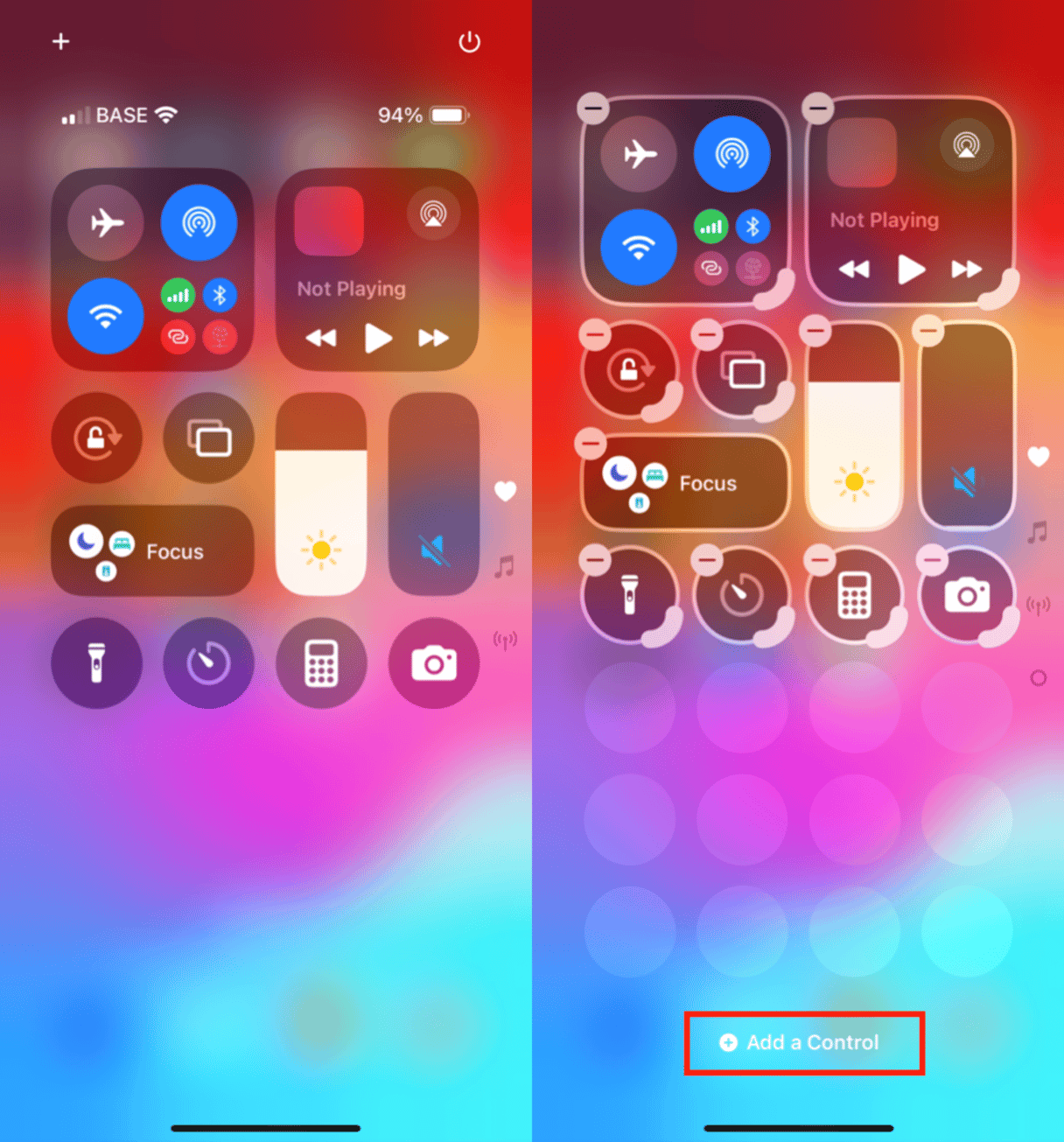 - Görene kadar ekrana uzun süre basınBir Kontrol Eklealtta.