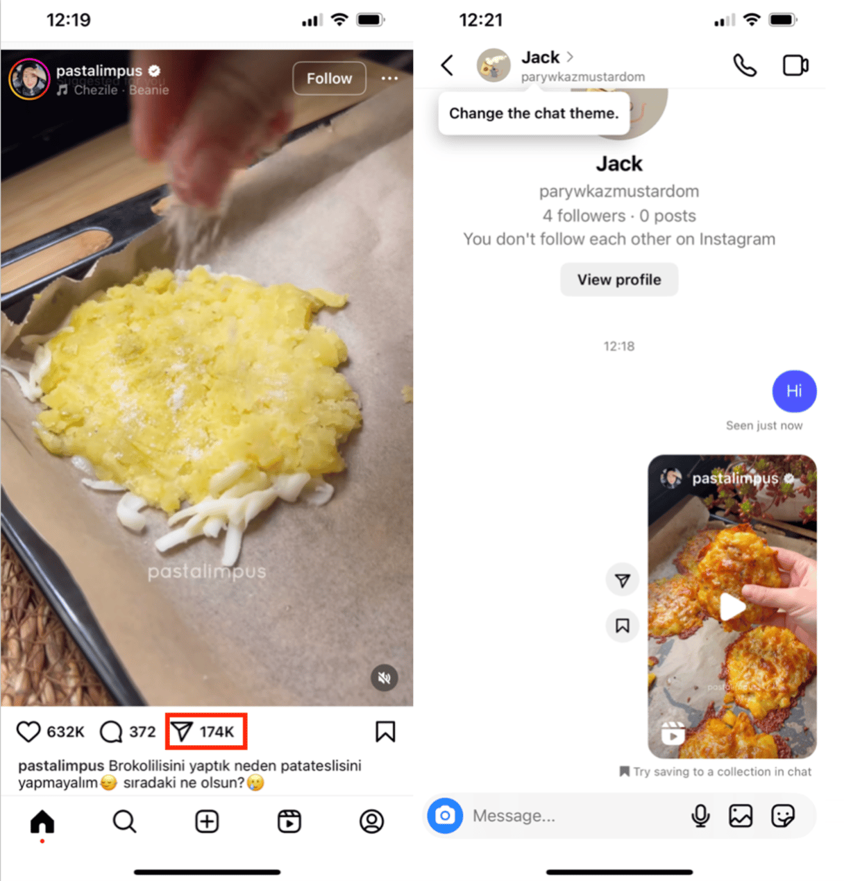 - Instagram'a gidin> Doğrudan Mesajlar.