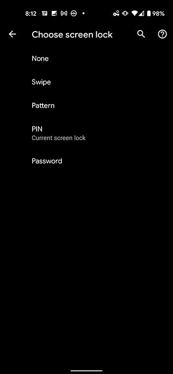 Parolayı Google Pixel 4A'nızdan kaldırmaya çalışıyorsanız, Yok seçeneğini seçmek istersiniz (önerilmez).