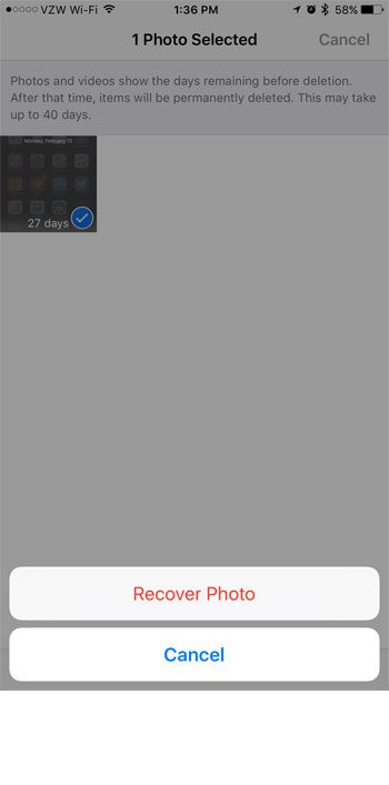 Adım 6: Kırmızıya dokununFotoğrafı kurtarResmi kamera rulosuna geri yüklemek istediğinizi onaylamak için düğme.